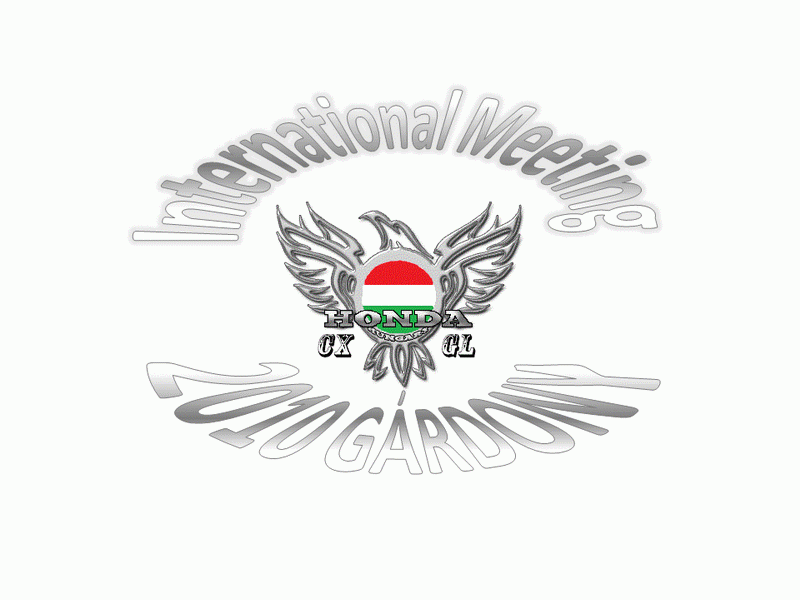 A póló hátulja: Hátközépen kb 20*20-cm-es logó, fölötte: HONDA CX-GL international meeting a logó alatt: 2009 HUNGARY és ezalatt a www.cx-gl.hu, mindez félkörívben alul és fölül egyaránt.