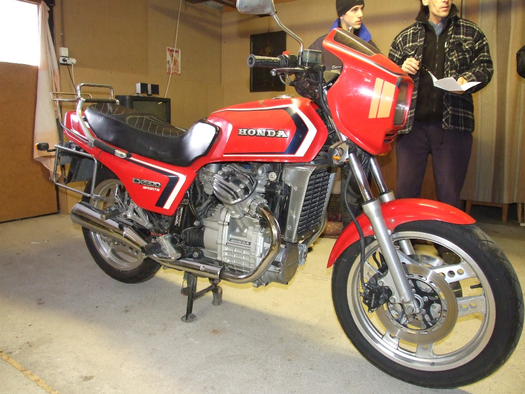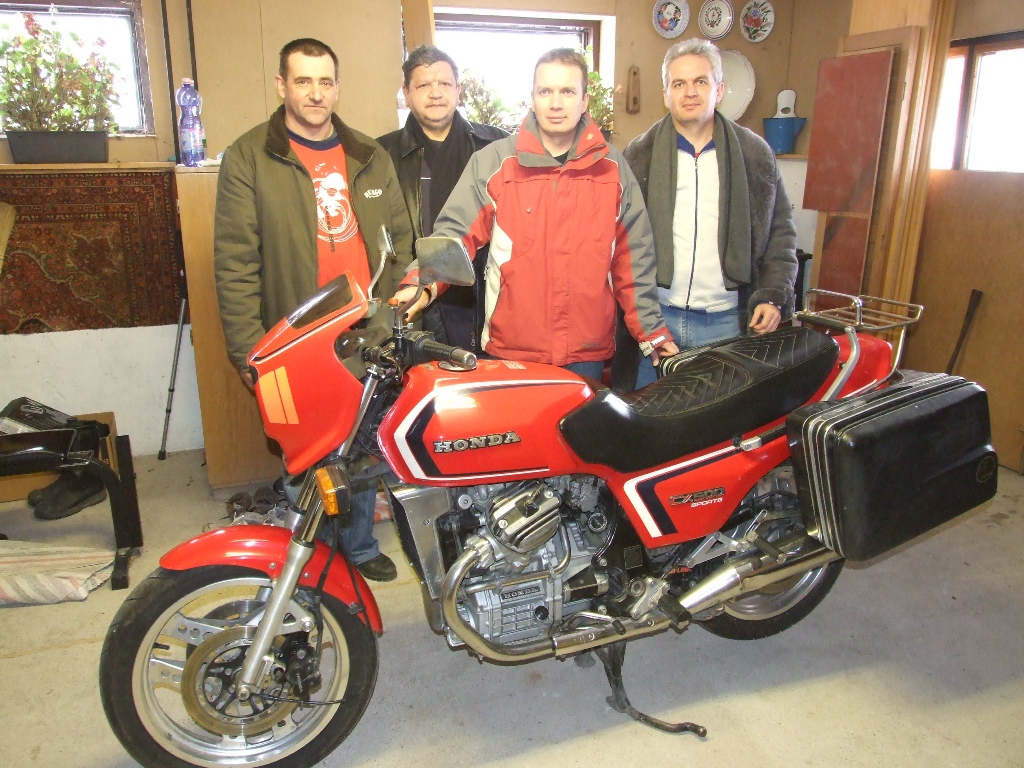 Majd véletlenül bukkantunk egy 82’-es 12000Km-rel, bontatlan blokkal hirdetett CX500E-re, melyet már talán egy éve is hirdettek, jóval magasabb áron, aztán egyszer csak eladó lett, mert az ára elérte az elfogadható jó ár érték arányt. Csak mai napra tudtuk megszervezni a motor szemrevételezését. Elõzõnap esti hatalmas hóesés kissé elbizonytalanított bennünket. De már egy hete ezt az alkalmat vártuk, és a hajnali hó helyzet kielemzése után mégis úgy döntöttünk nekivágunk az 5-10cm-es hóval borított 3 órás útnak, ahol max. 50km/h sebességgel csúszkáltunk a cél felé. Négyen indultunk a Miskolc melletti kis faluba. Kemény Csaba mint vevõ, Papp Gy. Bodnár A. és Kemény L. mint akik már láttak CX-et.