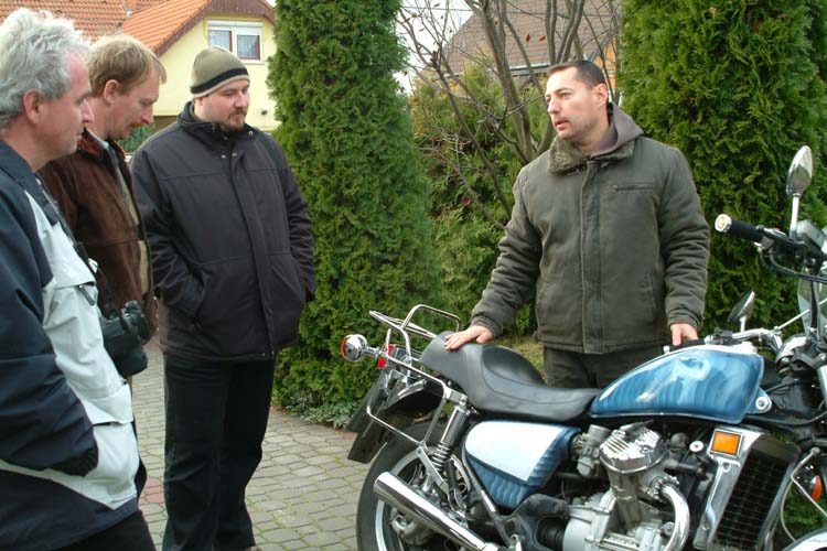 bennünket.(Fekete CX500 sport, és a kék/fehér cx500C. Innen az Ahojauto telephelyére siettünk, ahol eszméletlen