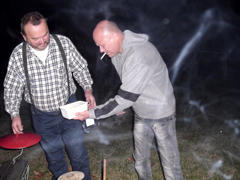 Azt nem tudom Feri belehamuzott-e a kajaba, de bele akarta tenni a dobozos csaladi fagyit, amit Jani hal' isten nem engedett