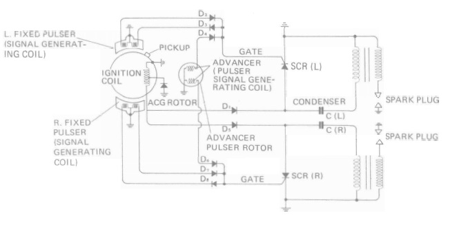 Onnan tudom, h nincs előgyújtás amit tapasztaltam, plusz találtam kapcsolási rajzot róla. Egyszerű faék tirisztor pár passzív alkatrész.