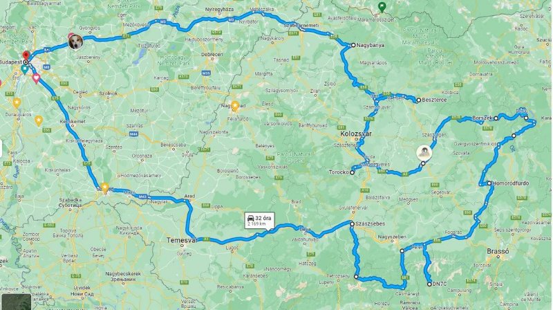 Az út úgy nézne ki kb., hogy Szász Tibivel én Perbál - Zsámbék - Budapesten keresztül a 4-es (vagy akár az 5-ös is szóba jöhet Dabasig) főúton kezdenénk meg a haladást Szolnok irányába, aminek magasságába kb. mondjuk 8-9 óra körül érkeznénk meg. Ott is (meg akinek közben Budapesten lennne jo, akkor ott is bárhol) lehetne esetleg egy csatlakozópont. Szolnoktól tovább Karcag, Berettyóújfalu, majd Nagyváradnál határátlépéssel tovább Bánffyhunyad stb., egészen Kolozsvár előttig. Ezidáig jó minőségű főútvonalak, néha 1-1 kisebb városon, falun át, szép és jó úton. Kolozsvár előtt (Gyalunál) viszont mi is föl a pályára, asszem az A3-ason Tordáig, majd ott át az A10-es pályára és le egészen Szászsebes, majd annak a szomszéd faluja Péterfalva, a célállomás.