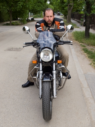 13-évesen Babettával kezdtem motorozni, amit pár év kihagyás után egy Honda DIO robogó követett. A nagymotor jogsi megszerzése után első nagymotorom keresése közben láttam meg véletlen az utcán egy CX 500-ast. Elsőre megtetszett a keresztbe V-motor, a tulajdonosa pedig tudott egy eladót jutányos áron. Így vettem meg a jelenlegi CX 500 Euro-mat 2005-ben. Az elmúlt években pár ezer km-t lemotoroztam és semmi komolyabb gondom nem volt vele. Annak ellenére hogy első motornak egy 250-es léghűtéses choppert szerettem volna nem bántam meg a választásom, sőt a motorom révén csatlakozhattam ehhez a remek társasághoz. Remélem hosszú évekig koptathatjuk együtt az aszfaltot!